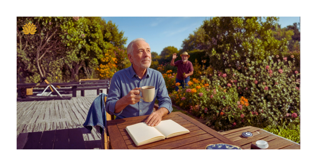 Ich beginne damit, wie Alan an einem Mittwochmorgen auf seiner Terrasse saß. Es war zum ersten Mal ohne den vertrauten Klang eines Weckers. Kein Termin, kein Meeting, nur das Zwitschern der Vögel und der Duft von frischem Kaffee begleiteten ihn. Diese neue Freiheit fühlte sich zunächst fremd an, fast beängstigend in ihrer Stille.